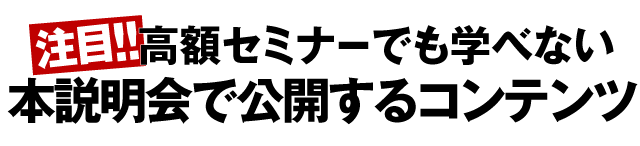 繰り返しになり恐縮ですが、この講座の成功率は、業界でも類を見ないほどの数字だと自負しています。そして、説明会だけでも、参加費の10倍の価値をお伝えできるものと思っています。