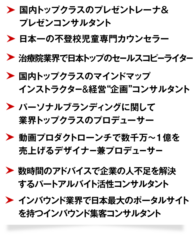 なお、説明会では、単に講座の内容を説明するだけでなく、トップコンサルタントになるために知るべき必須知識を時間のかぎりたっぷりお伝えします。