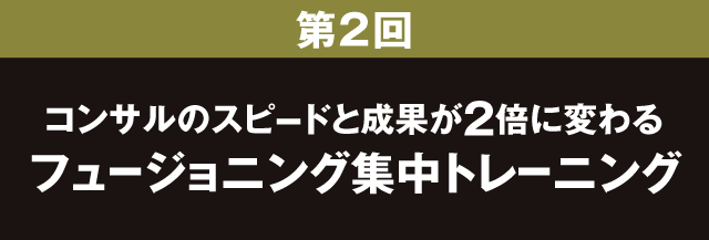 この講座では、このフュージョニングをただ学ぶだけでなく、コンサルの現場で確実に実践してもらえるよう徹底的にトレーニングしてもらいます。