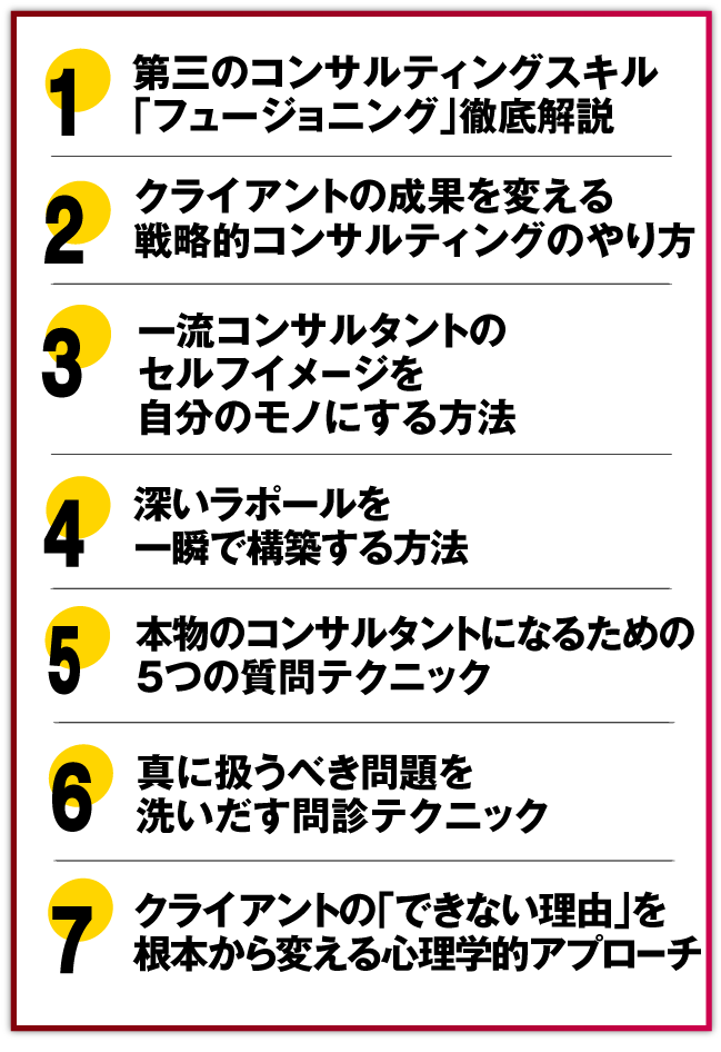 具体的には、あらゆる問題をわずか15分で解決する“第三のコンサルティング手法”をマスターするのです。