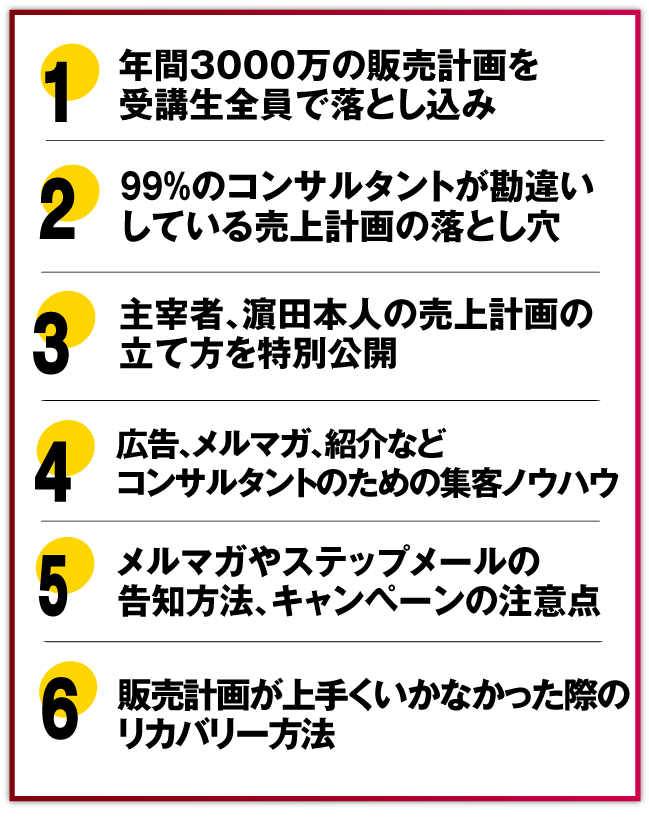 では、いよいよ、トップコンサルタント養成講座のカリキュラムについて説明していきます。