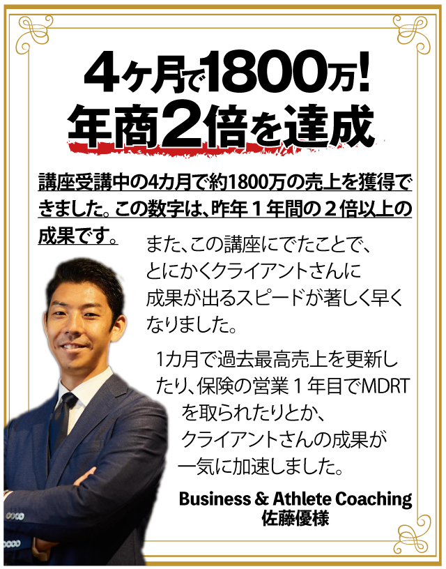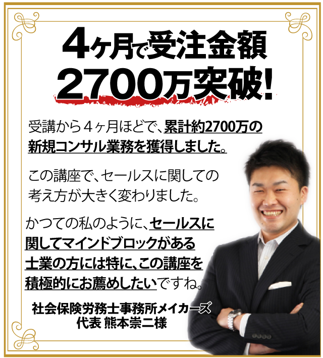 たとえば、1000万を超える契約を獲得するとか、年商ベースで3000万を達成するなど、受講中に次々と受注獲得に成功しているのです。