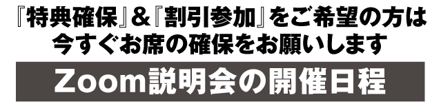 したがって、少しでも講座にご興味あるなら、今すぐ、下記日程の中からご都合よい日をお選びのうえ、説明会にご参加ください。