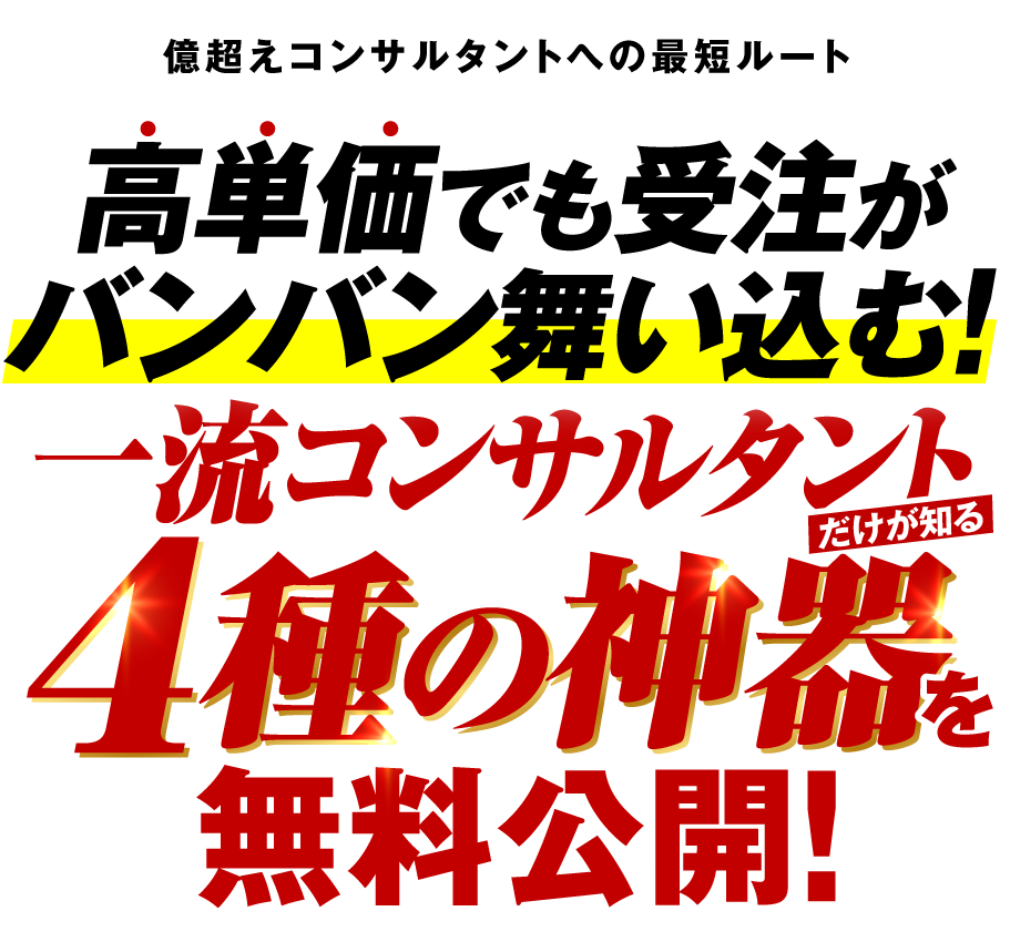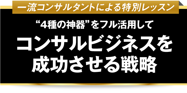 この無料動画セミナーでお伝えする4種の神器は、世の中のセミナーやコンサルタントを育成する講座で語られている内容とは全く“別次元”のものです。