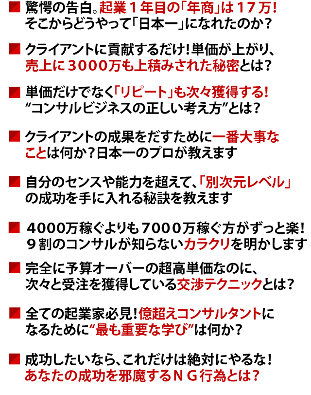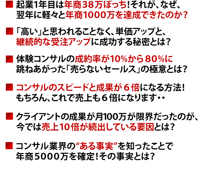 したがって、コンサルタントとして売上アップと、スキルアップを同時に実現したい!そう思われるなら今すぐ無料動画にご登録ください。