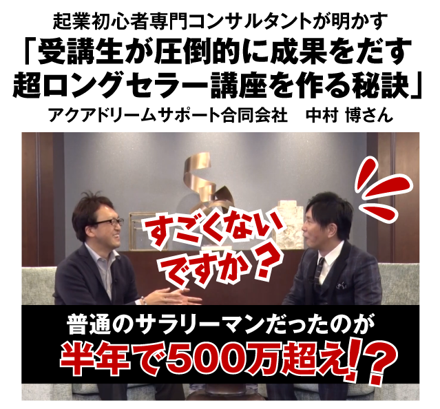 しかも、中村さんの経営塾では、まったくの起業初心者がわずか半年で500万円の売上を叩きだすことも珍しくないとのこと。
