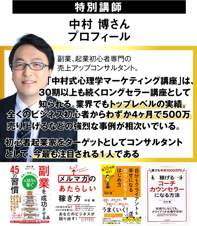 その人の名は、中村式心理学マーケティングの塾長、中村博さん。